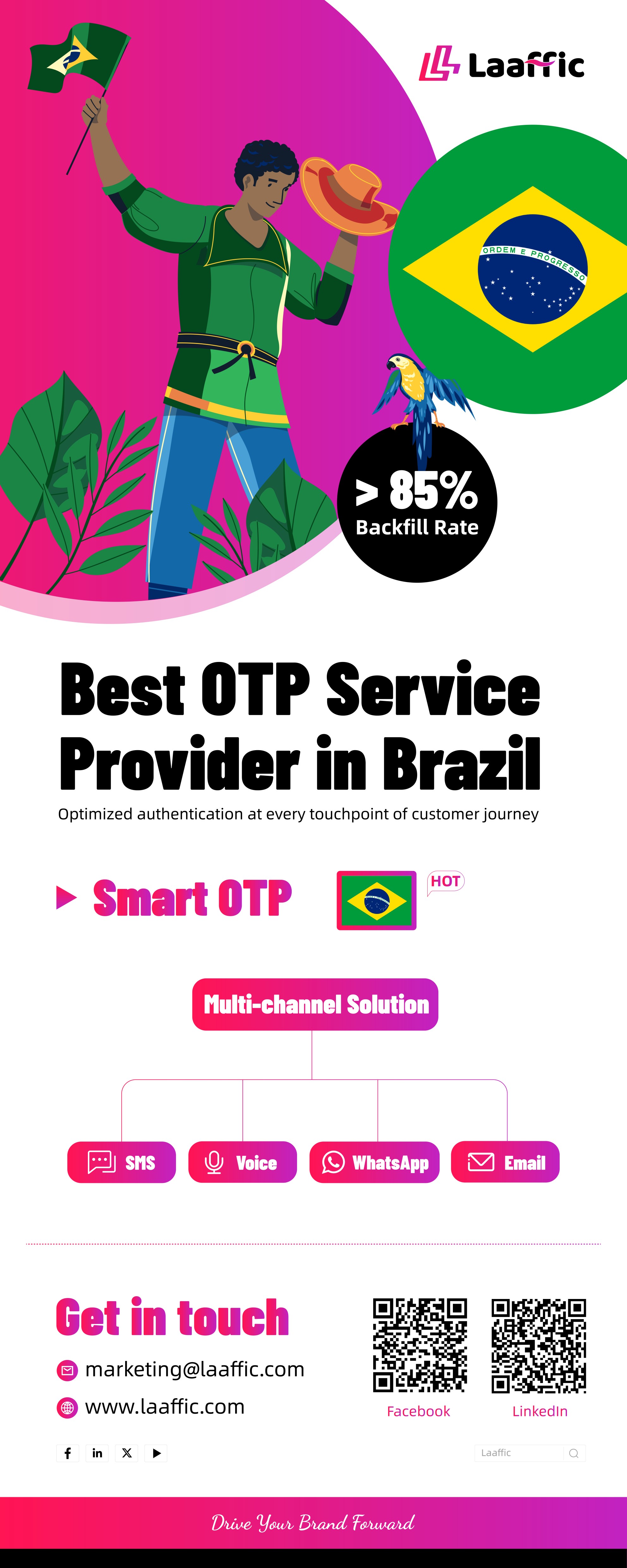 Unlike the prevalent ticketing process in the industry, Laaffic's nearly 500 marketing experts are available 24/7 to respond to customer needs within 60 seconds, providing high-quality service. Furthermore, Laaffic pledges to provide only the highest quality communication channels to maximize customer marketing coverage, delivery rates, and OTP fill rates worldwide.