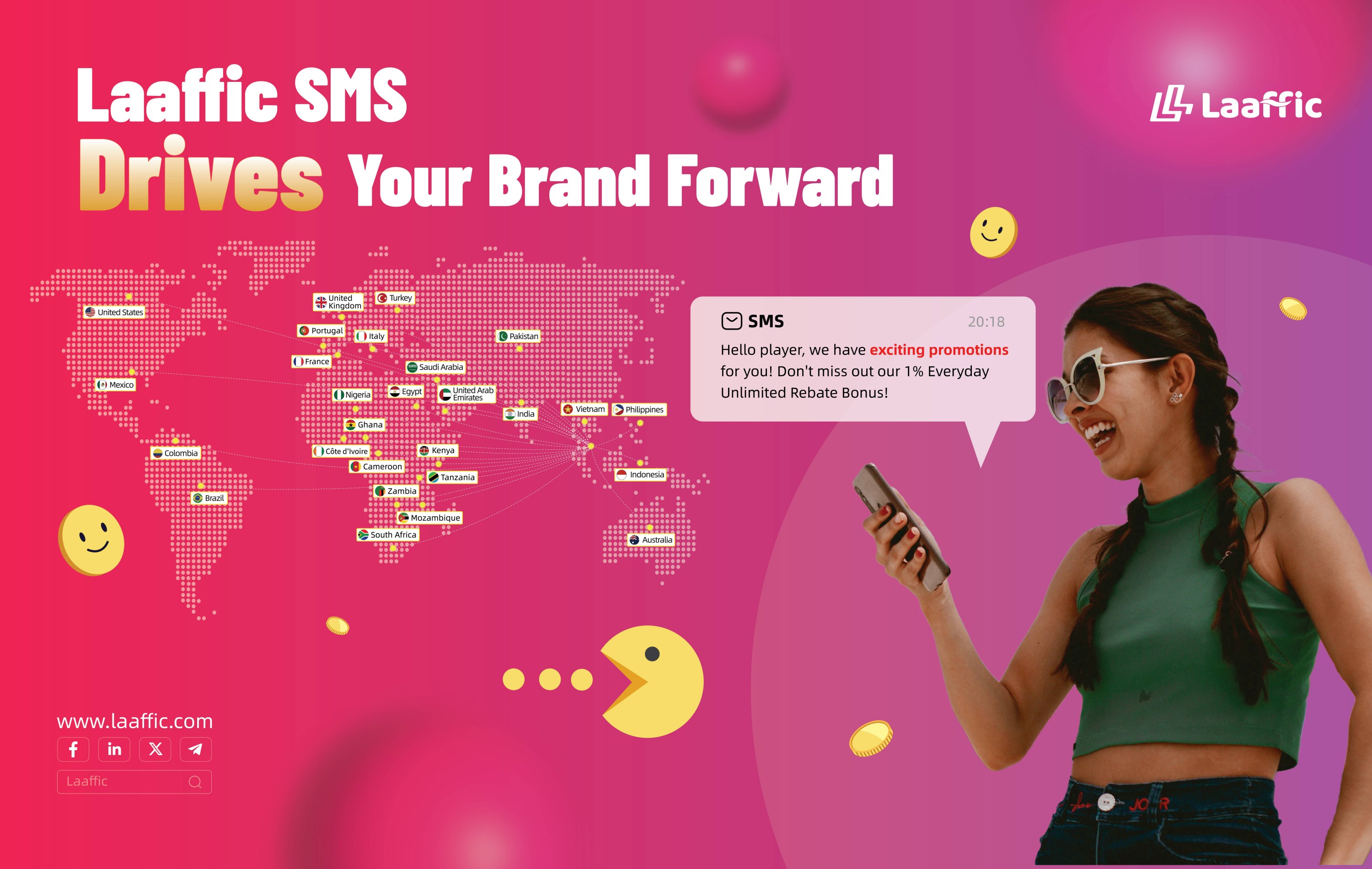 事實上,Laaffic核心團隊是最早一批進入短信和語音行銷行業的專家。經過17年積累和沉澱,Laaffic已擁有豐厚的全球直連通道資源,行銷產品可